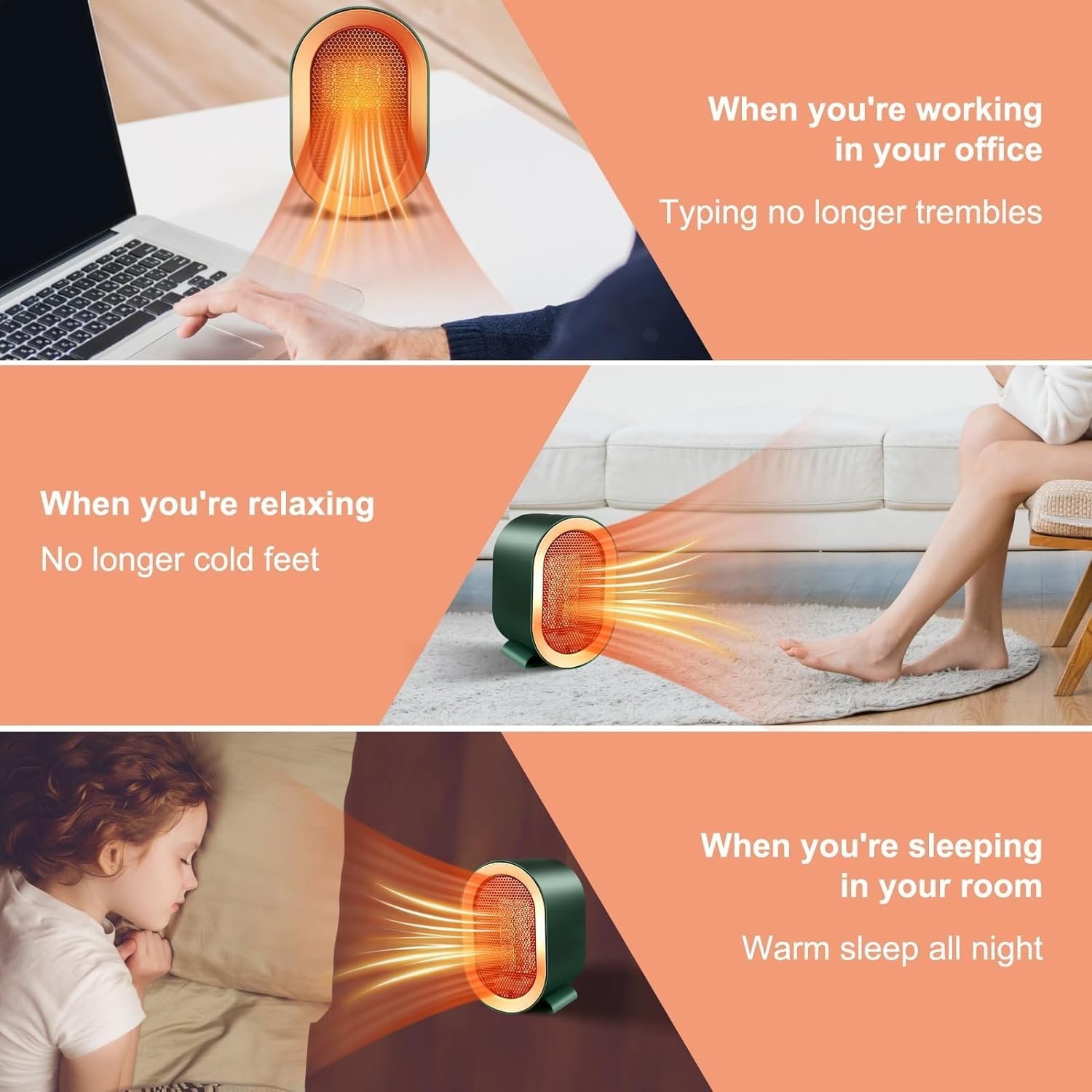 - Safe overheating protection: The small heater is made of high-quality flame-retardant materials, with zero safety hazard. Overheating protection will automatically turn off the heater when it overheats.