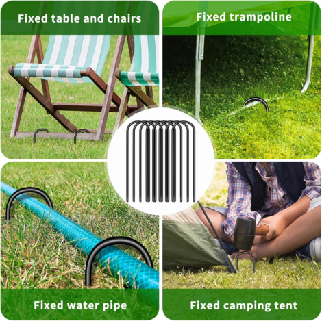Wear gloves when handling stakes to avoid injury from sharp ends. Ensure stakes are securely fastened to prevent becoming projectiles. Avoid installation near underground utilities. Follow additional safety guidelines for outdoor adventure, hiking, and camping uses.